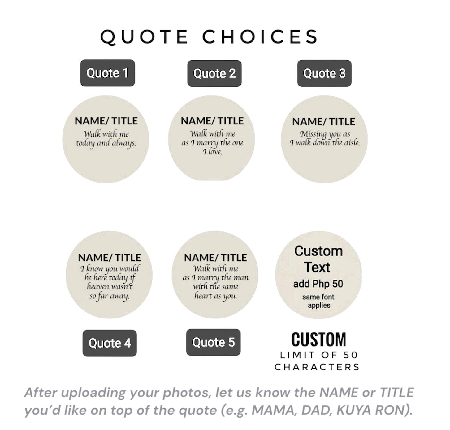 We’ll resize and place your photo for free. Additional edits (e.g. change background, enhancements, removal of unwanted elements, etc) are available for a fee. However, we’ll first assess the quality of the original photo to determine if improvements can be made. Let us know if you have specific cropping/placement preferences in the notes portion after uploading your photo, or we'll choose the best layout.
