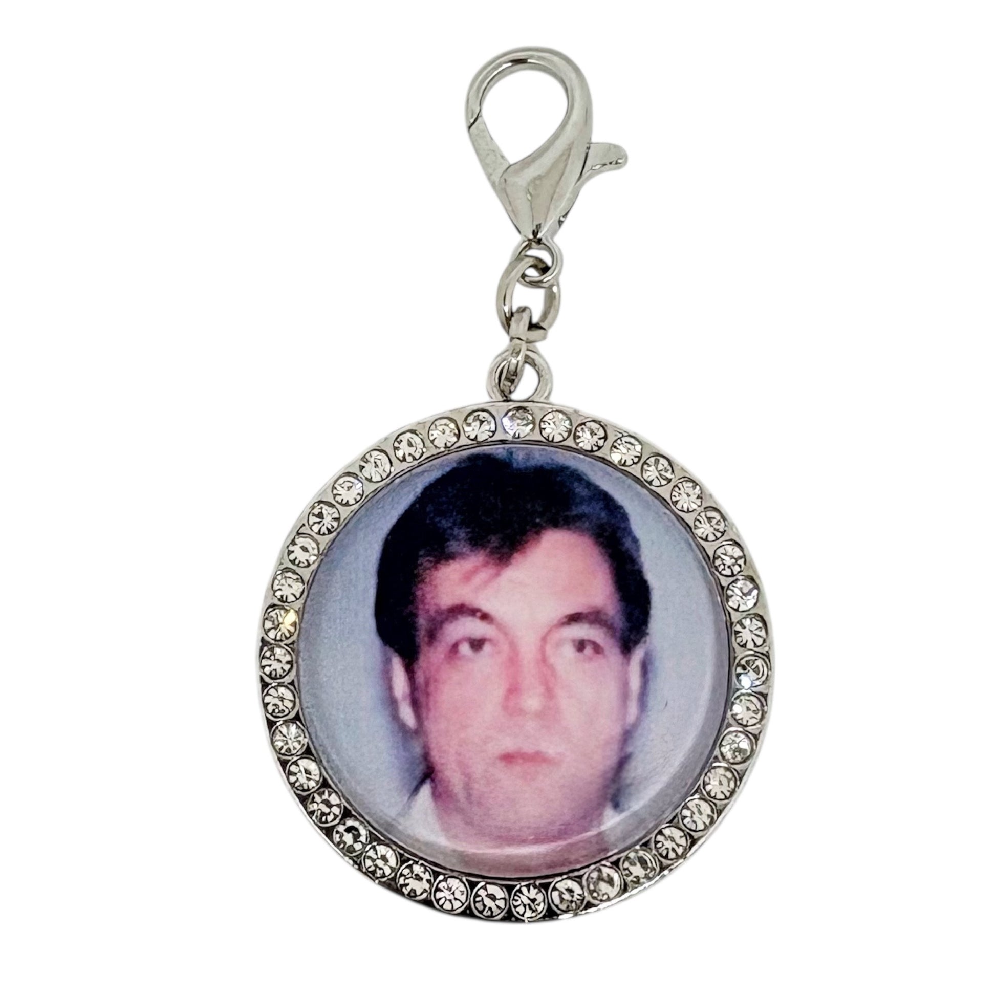 Carry the memory of someone dear close to your heart with this elegant medium-sized pendant charm. Perfect for attaching to a boutonniere or a wedding bouquet, it’s a meaningful way to keep them part of your celebration.