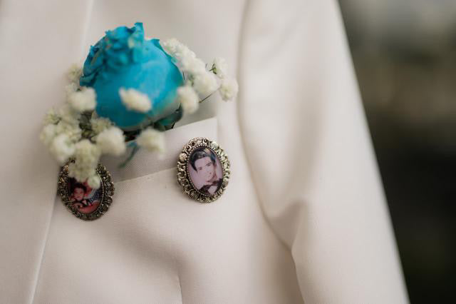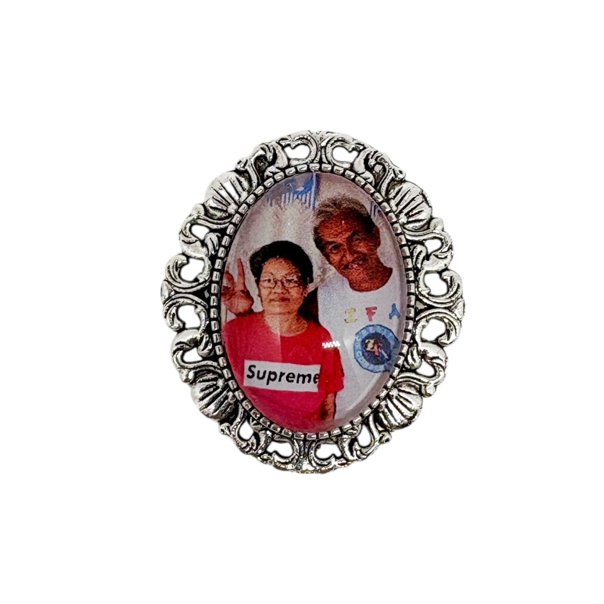 Keep their memory close with this elegant medium-sized photo pin charm. Designed to be attached securely to a boutonniere or wedding bouquet, it’s a beautiful way to honor someone dear during your celebration.